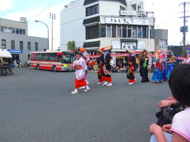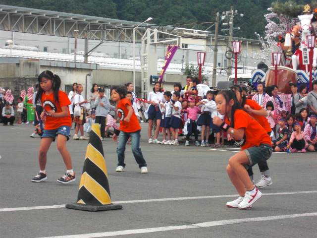 この祭りのポイントは,小学生と中学生がいっぱい出て催しものをやる点。