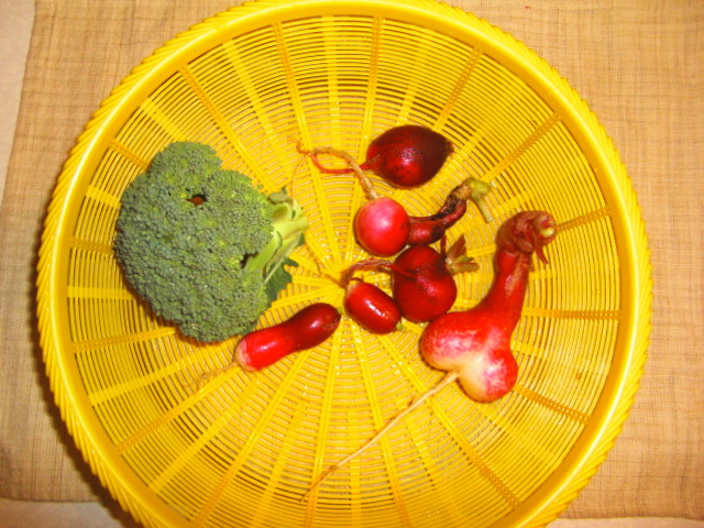 もう,3ヶ月以上放置のハツカダイコンと同じ頃植えたブロッコリーの収穫をした。