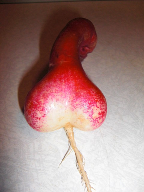 蛇みたいに伸びてるハツカダイコンを収穫したのですが,よく見るとおにんにん。