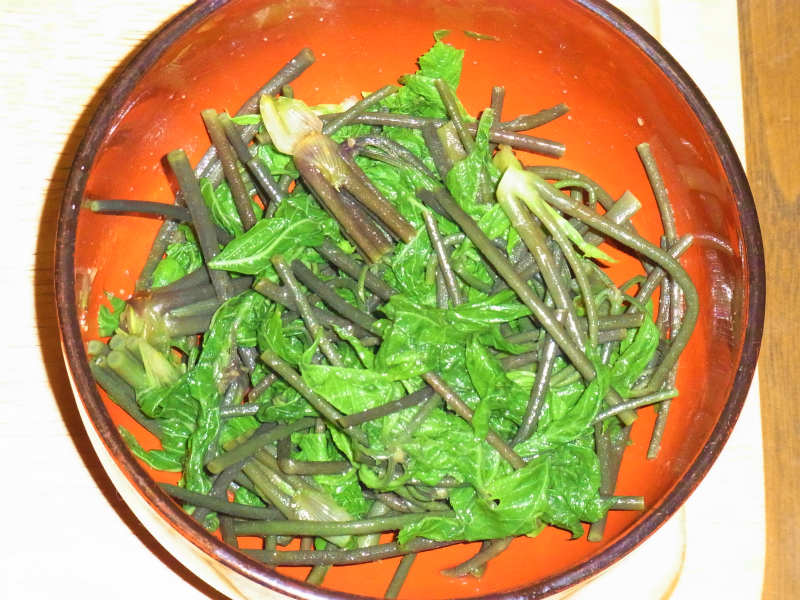 あと、今、山菜のコシアブラの酢味噌和えをたべてる