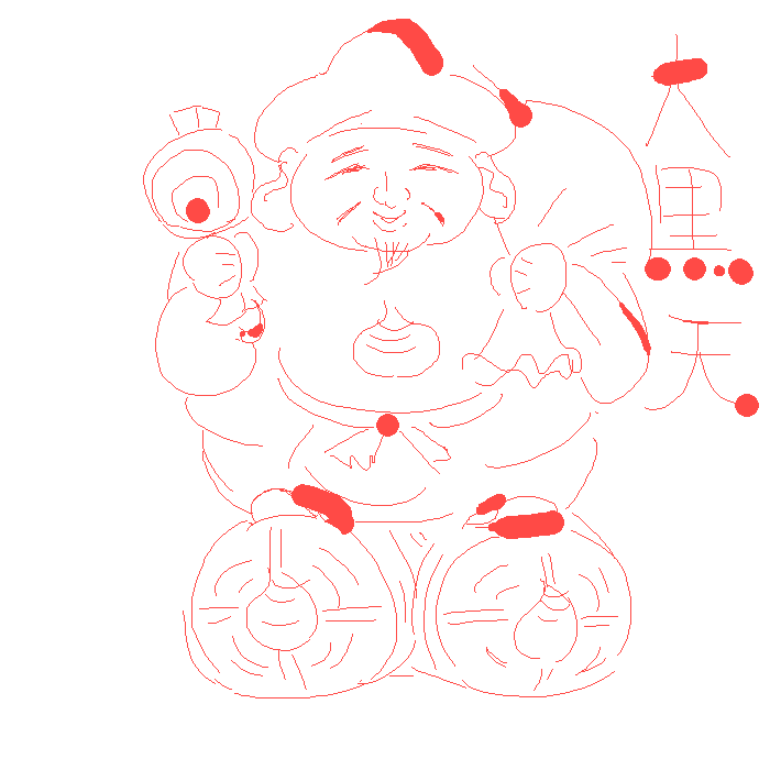 えびす様を彫ったのですが、釣り竿は竹の割り箸でつくったよ。